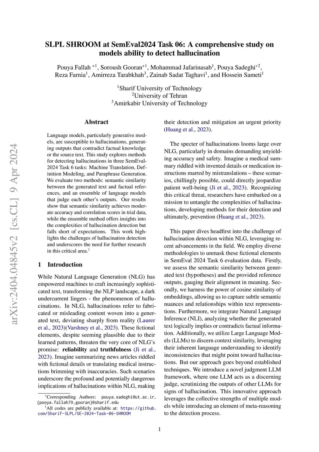 SLPL SHROOM at SemEval2024 Task 06: A comprehensive study on models