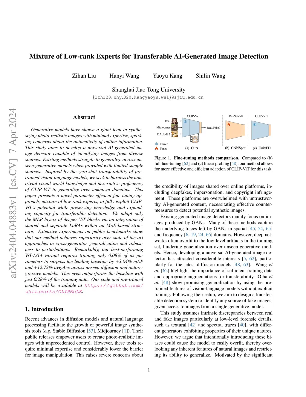 Mixture of Low-rank Experts for Transferable AI-Generated Image
