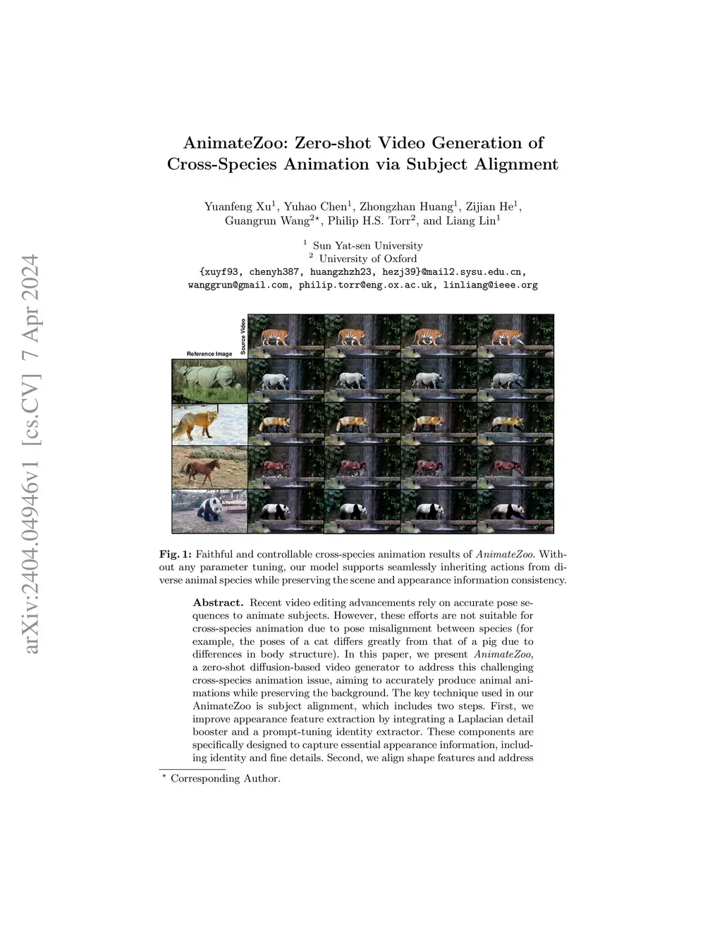 AnimateZoo: Zero-shot Video Generation of Cross-Species Animation via
