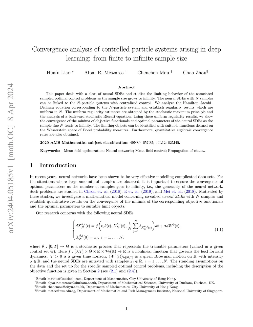 Convergence analysis of controlled particle systems arising in deep learning: from finite to infinite sample size