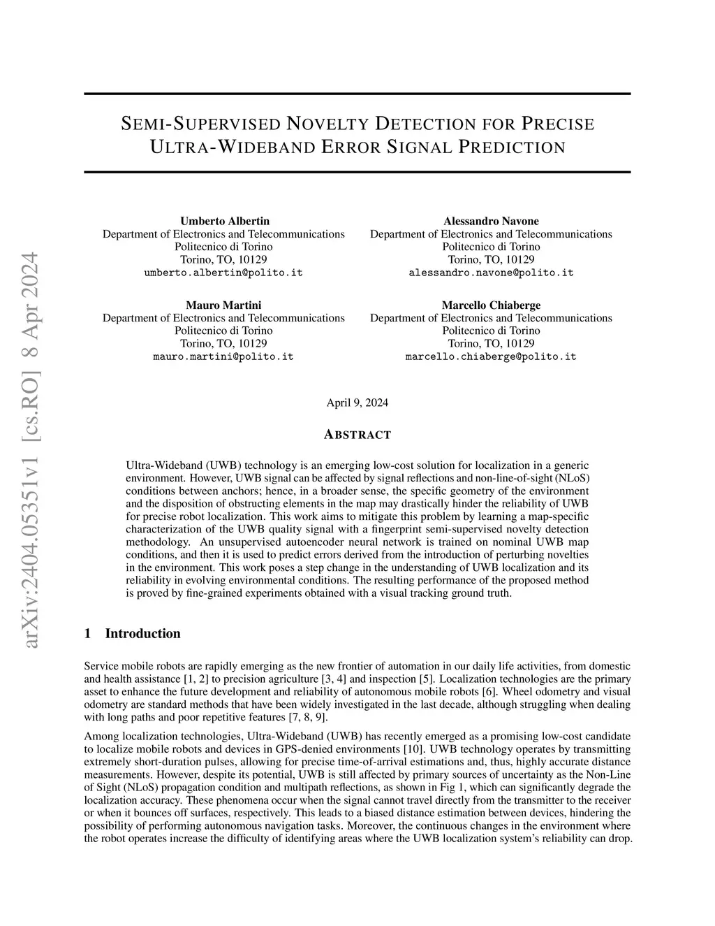 Semi-Supervised Novelty Detection for Precise Ultra-Wideband Error