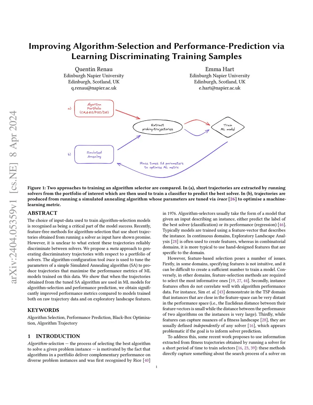 The choice of input-data used to train algorithm-selection models is recognised as being a critical part of the model success. Recently, feature-free methods for algorithm-selection that use short trajectories obtained from running a solver as input have shown promise. However, it is unclear to what extent these trajectories reliably discriminate between solvers. We propose a meta approach to generating discriminatory trajectories with respect to a portfolio of solvers. The algorithm-configuration tool irace is used to tune the parameters of a simple Simulated Annealing algorithm (SA) to produce trajectories that maximise the performance metrics of ML models trained on this data. We show that when the trajectories obtained from the tuned SA algorithm are used in ML models for algorithm-selection and performance prediction, we obtain significantly improved performance metrics compared to models trained both on raw trajectory data and on exploratory landscape features.