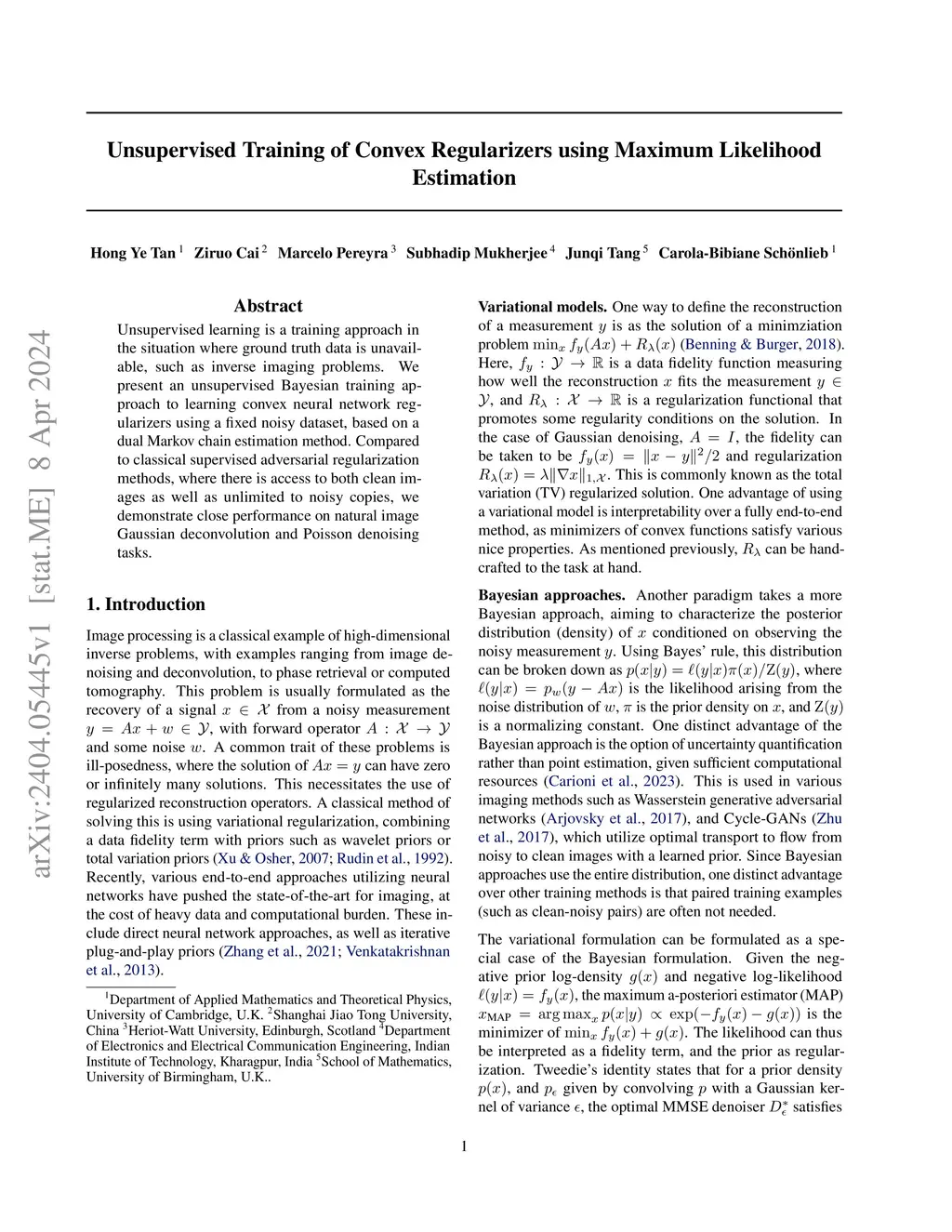 Imaging is a standard example of an inverse problem, where the task of reconstructing a ground truth from a noisy measurement is ill-posed. Recent state-of-the-art approaches for imaging use deep learning, spearheaded by unrolled and end-to-end models and trained on various image datasets. However, many such methods require the availability of ground truth data, which may be unavailable or expensive, leading to a fundamental barrier that can not be bypassed by choice of architecture. Unsupervised learning presents an alternative paradigm that bypasses this requirement, as they can be learned directly on noisy data and do not require any ground truths. A principled Bayesian approach to unsupervised learning is to maximize the marginal likelihood with respect to the given noisy measurements, which is intrinsically linked to classical variational regularization. We propose an unsupervised approach using maximum marginal likelihood estimation to train a convex neural network-based image regularization term directly on noisy measurements, improving upon previous work in both model expressiveness and dataset size. Experiments demonstrate that the proposed method produces priors that are near competitive when compared to the analogous supervised training method for various image corruption operators, maintaining significantly better generalization properties when compared to end-to-end methods. Moreover, we provide a detailed theoretical analysis of the convergence properties of our proposed algorithm.