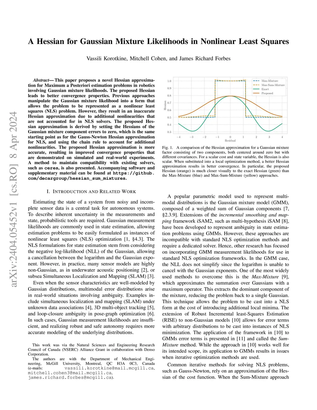A Hessian for Gaussian Mixture Likelihoods in Nonlinear Least Squares