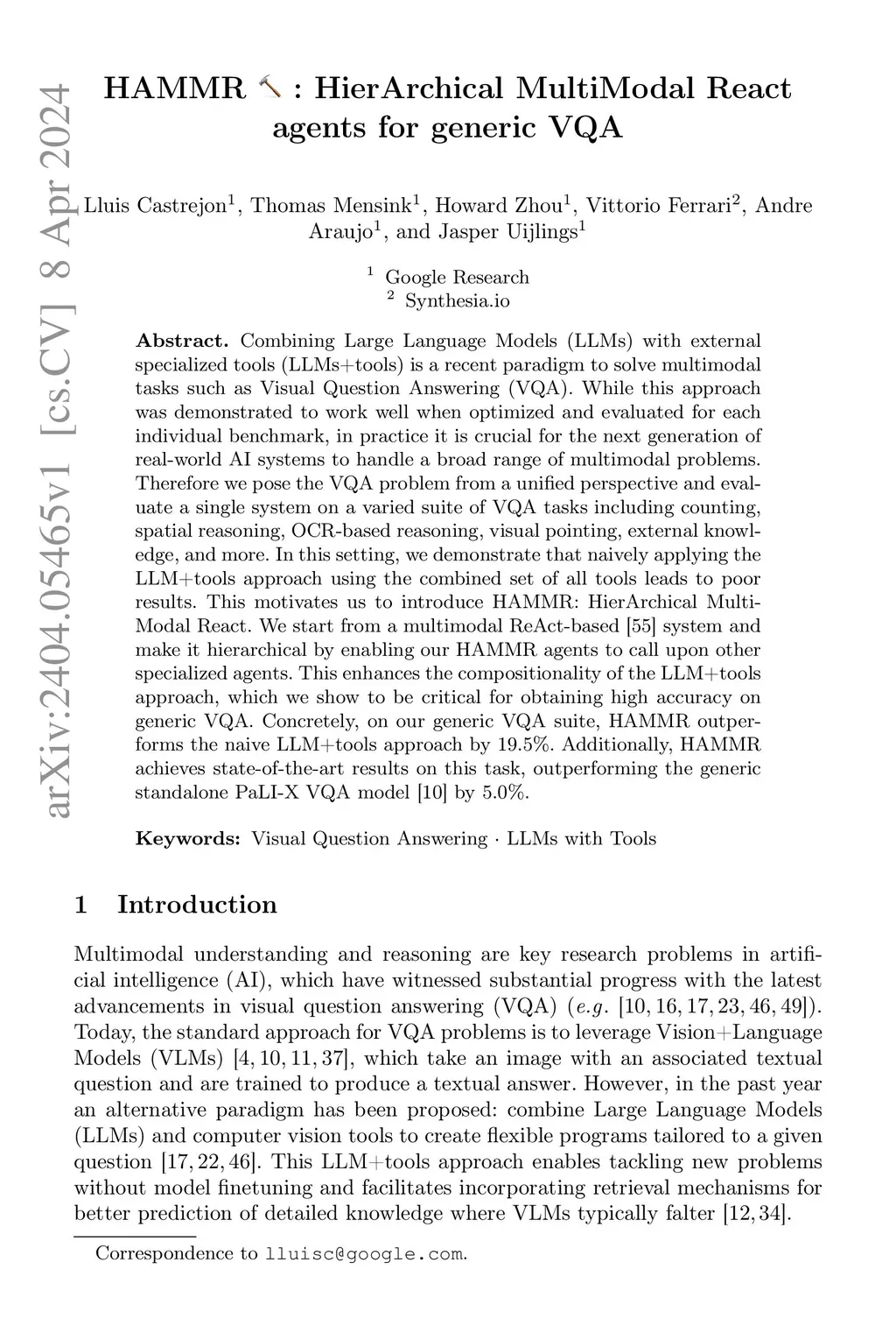 HAMMR: HierArchical MultiModal React agents for generic VQA
