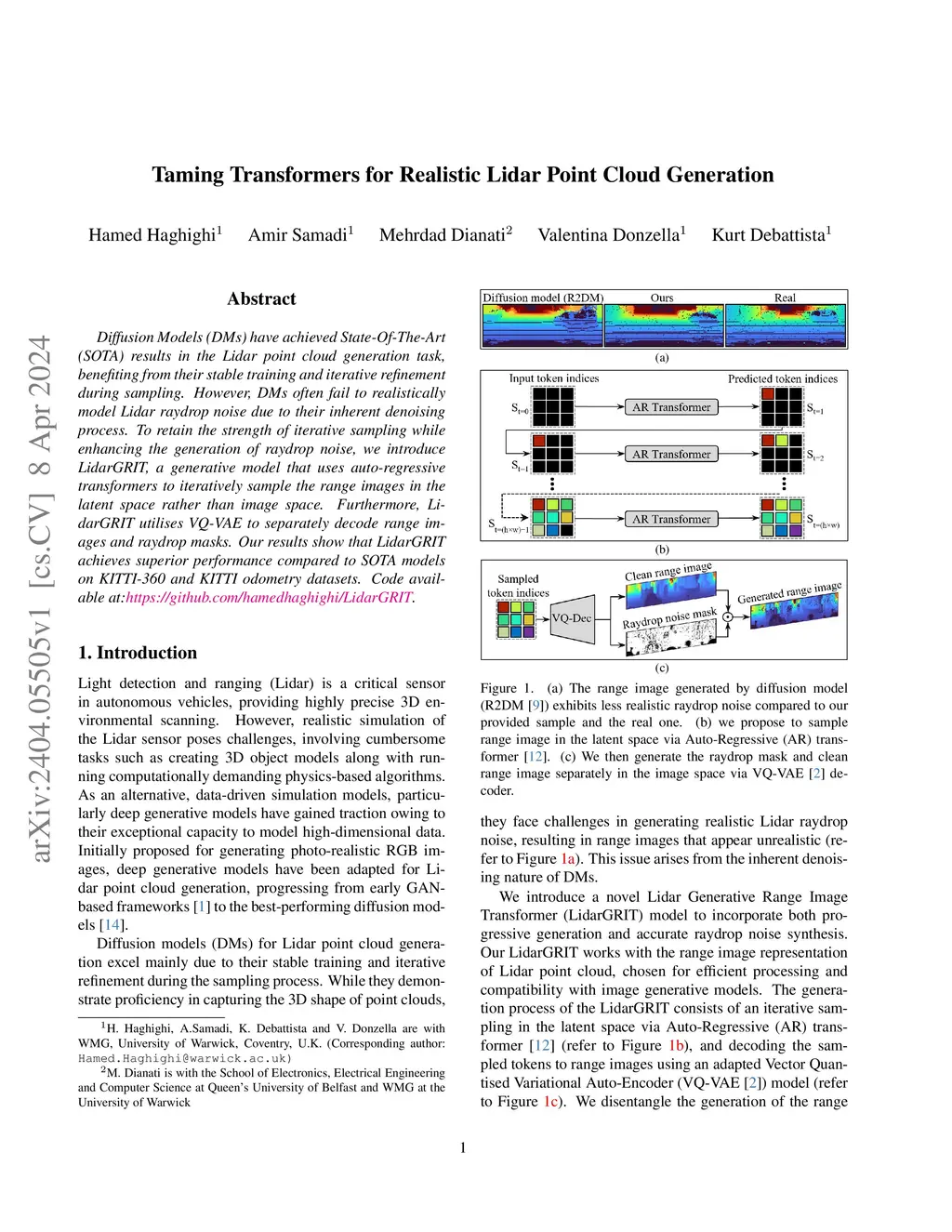 Diffusion Models (DMs) have achieved State-Of-The-Art (SOTA) results in the Lidar point cloud generation task, benefiting from their stable training and iterative refinement during sampling. However, DMs often fail to realistically model Lidar raydrop noise due to their inherent denoising process. To retain the strength of iterative sampling while enhancing the generation of raydrop noise, we introduce LidarGRIT, a generative model that uses auto-regressive transformers to iteratively sample the range images in the latent space rather than image space. Furthermore, LidarGRIT utilises VQ-VAE to separately decode range images and raydrop masks. Our results show that LidarGRIT achieves superior performance compared to SOTA models on KITTI-360 and KITTI odometry datasets. Code available at:https://github.com/hamedhaghighi/LidarGRIT.