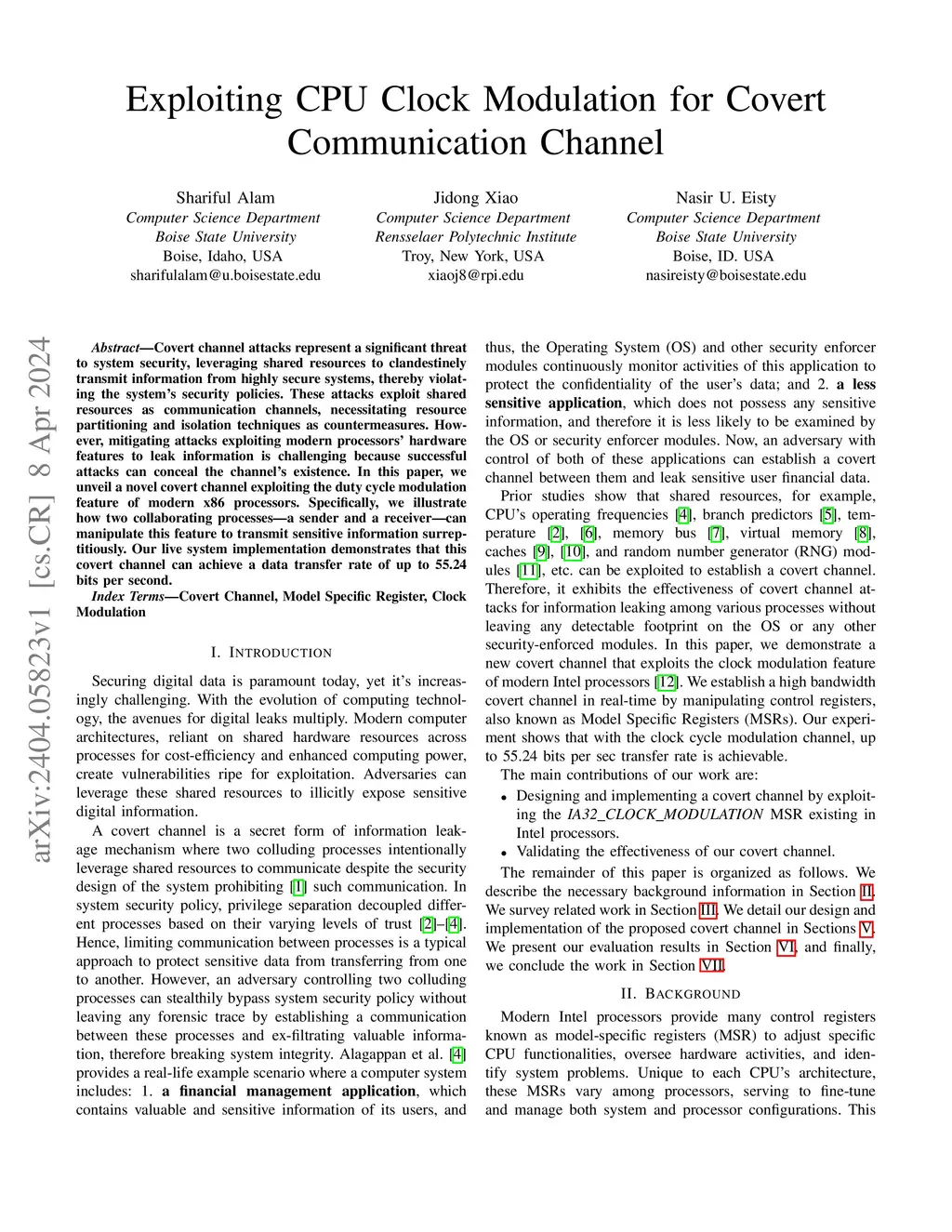Exploiting CPU Clock Modulation for Covert Communication Channel
