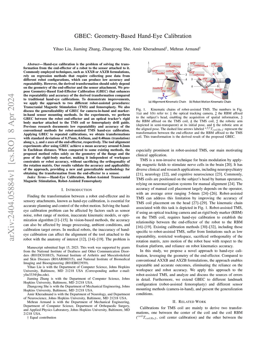 Hand-eye calibration is the problem of solving the transformation from the end-effector of a robot to the sensor attached to it. Commonly employed techniques, such as AXXB or AXZB formulations, rely on regression methods that require collecting pose data from different robot configurations, which can produce low accuracy and repeatability. However, the derived transformation should solely depend on the geometry of the end-effector and the sensor attachment. We propose Geometry-Based End-Effector Calibration (GBEC) that enhances the repeatability and accuracy of the derived transformation compared to traditional hand-eye calibrations. To demonstrate improvements, we apply the approach to two different robot-assisted procedures: Transcranial Magnetic Stimulation (TMS) and femoroplasty. We also discuss the generalizability of GBEC for camera-in-hand and marker-in-hand sensor mounting methods. In the experiments, we perform GBEC between the robot end-effector and an optical tracker's rigid body marker attached to the TMS coil or femoroplasty drill guide. Previous research documents low repeatability and accuracy of the conventional methods for robot-assisted TMS hand-eye calibration. When compared to some existing methods, the proposed method relies solely on the geometry of the flange and the pose of the rigid-body marker, making it independent of workspace constraints or robot accuracy, without sacrificing the orthogonality of the rotation matrix. Our results validate the accuracy and applicability of the approach, providing a new and generalizable methodology for obtaining the transformation from the end-effector to a sensor.