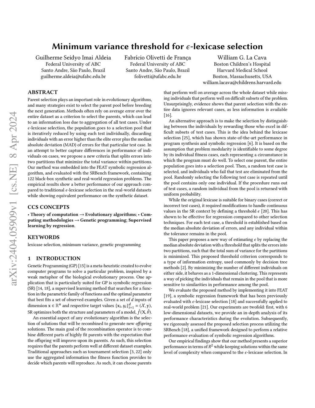 Parent selection plays an important role in evolutionary algorithms, and many strategies exist to select the parent pool before breeding the next generation. Methods often rely on average error over the entire dataset as a criterion to select the parents, which can lead to an information loss due to aggregation of all test cases. Under epsilon-lexicase selection, the population goes to a selection pool that is iteratively reduced by using each test individually, discarding individuals with an error higher than the elite error plus the median absolute deviation (MAD) of errors for that particular test case. In an attempt to better capture differences in performance of individuals on cases, we propose a new criteria that splits errors into two partitions that minimize the total variance within partitions. Our method was embedded into the FEAT symbolic regression algorithm, and evaluated with the SRBench framework, containing 122 black-box synthetic and real-world regression problems. The empirical results show a better performance of our approach compared to traditional epsilon-lexicase selection in the real-world datasets while showing equivalent performance on the synthetic dataset.