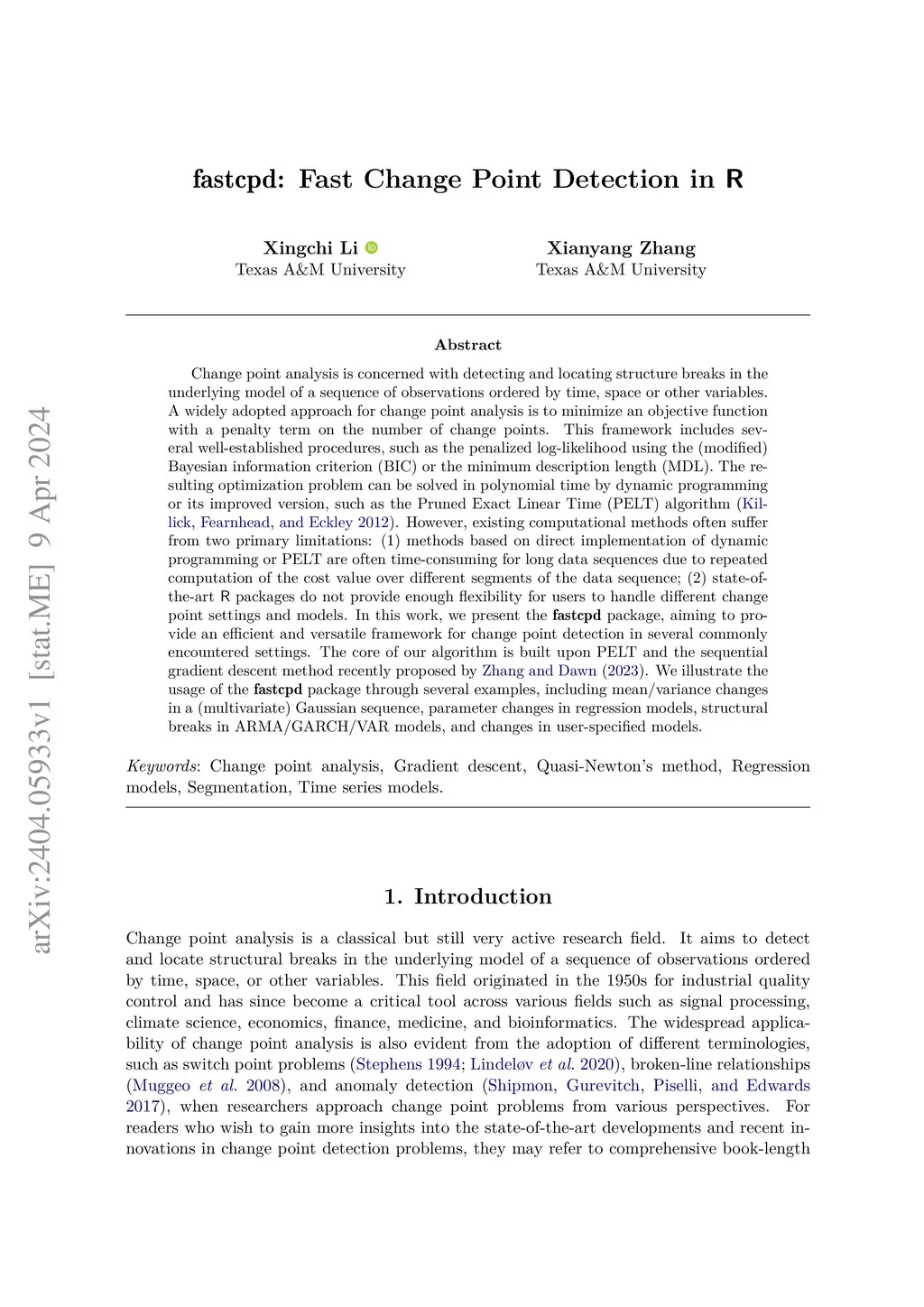 fastcpd: Fast Change Point Detection in R