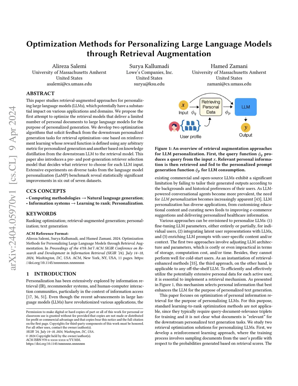 Optimization Methods for Personalizing Large Language Models through