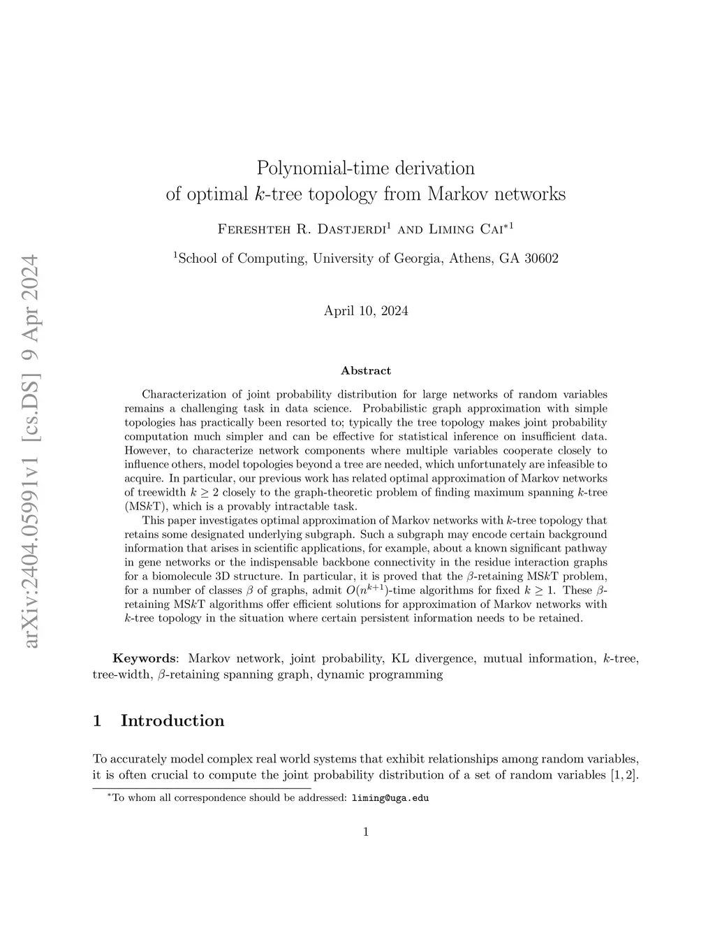 Polynomial-time derivation of optimal k-tree topology from Markov