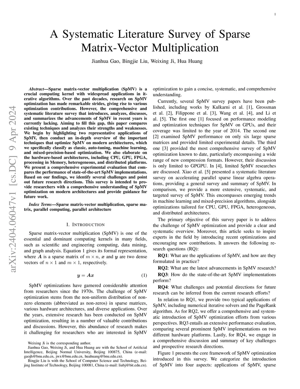A Systematic Literature Survey of Sparse Matrix-Vector Multiplication