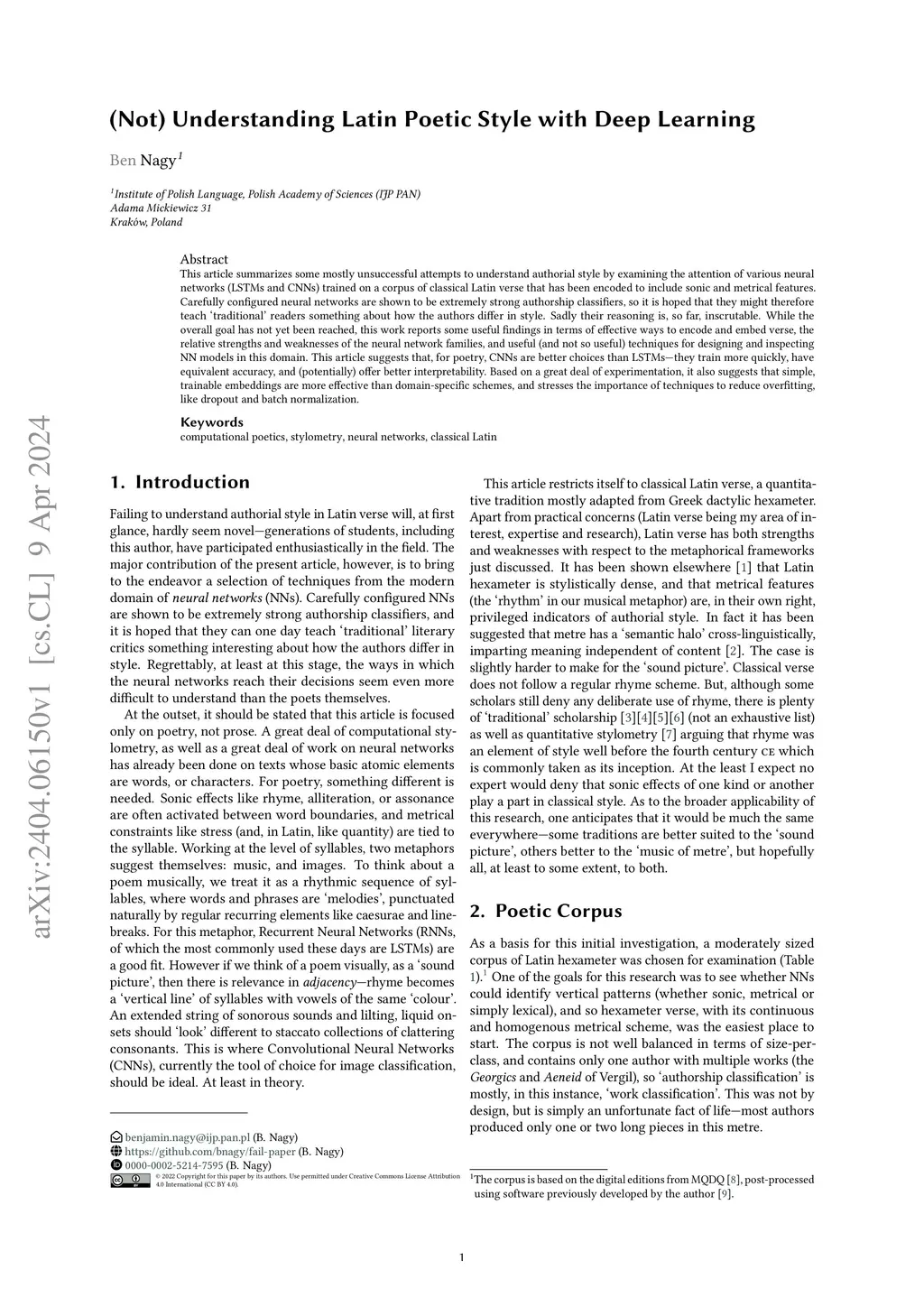 This article summarizes some mostly unsuccessful attempts to understand authorial style by examining the attention of various neural networks (LSTMs and CNNs) trained on a corpus of classical Latin verse that has been encoded to include sonic and metrical features. Carefully configured neural networks are shown to be extremely strong authorship classifiers, so it is hoped that they might therefore teach `traditional' readers something about how the authors differ in style. Sadly their reasoning is, so far, inscrutable. While the overall goal has not yet been reached, this work reports some useful findings in terms of effective ways to encode and embed verse, the relative strengths and weaknesses of the neural network families, and useful (and not so useful) techniques for designing and inspecting NN models in this domain. This article suggests that, for poetry, CNNs are better choices than LSTMs -- they train more quickly, have equivalent accuracy, and (potentially) offer better interpretability. Based on a great deal of experimentation, it also suggests that simple, trainable embeddings are more effective than domain-specific schemes, and stresses the importance of techniques to reduce overfitting, like dropout and batch normalization.