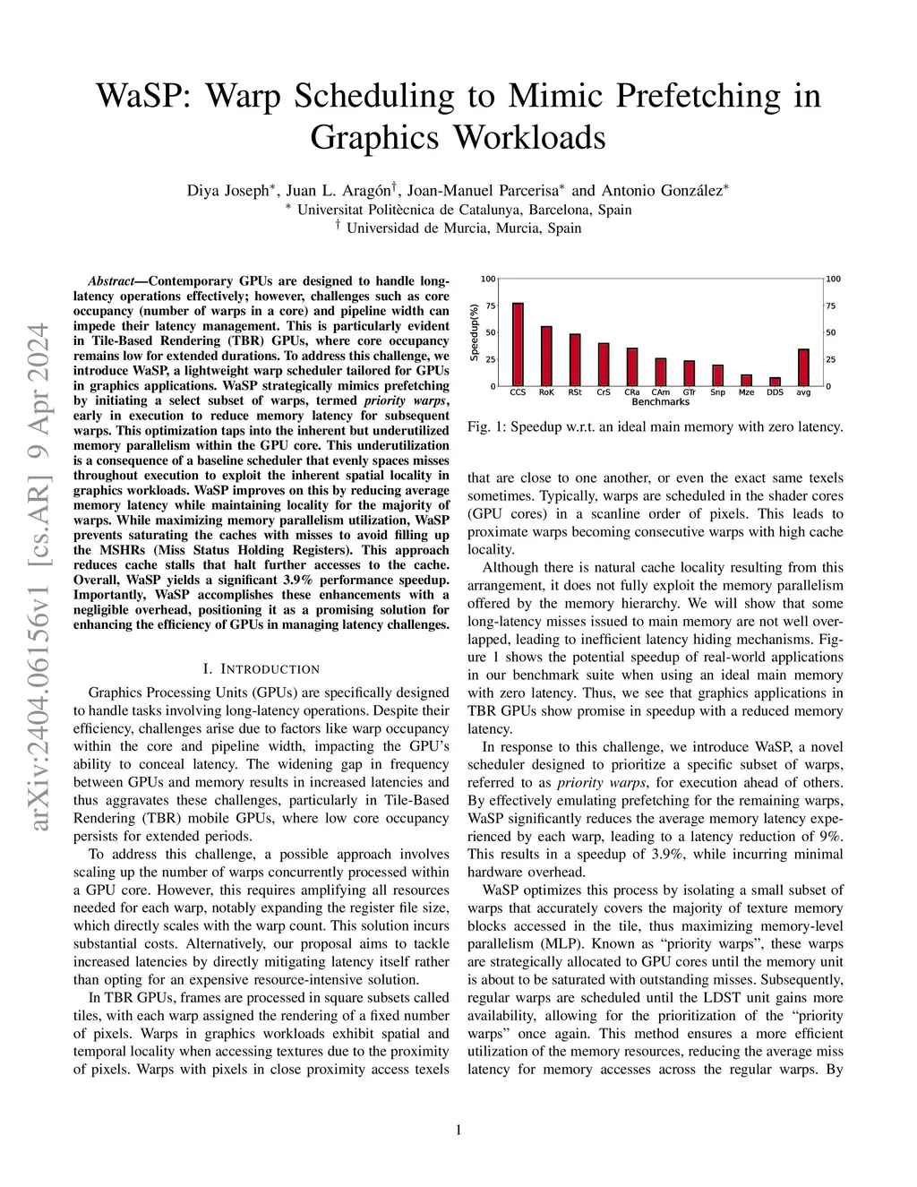 WaSP: Warp Scheduling to Mimic Prefetching in Graphics Workloads