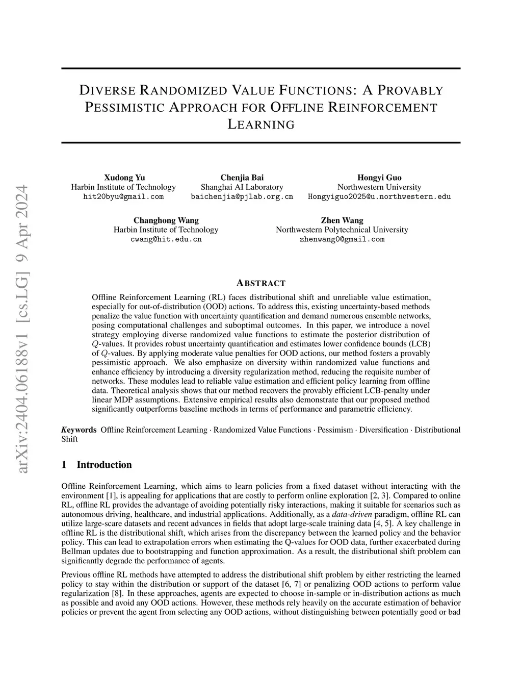 Diverse Randomized Value Functions: A Provably Pessimistic Approach for