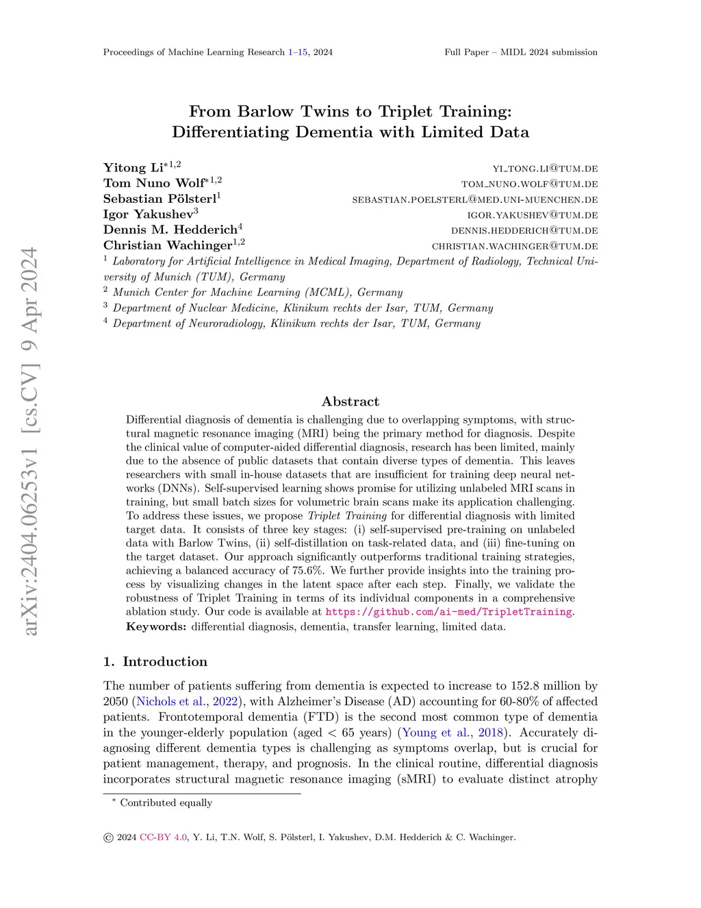 From Barlow Twins to Triplet Training: Differentiating Dementia with