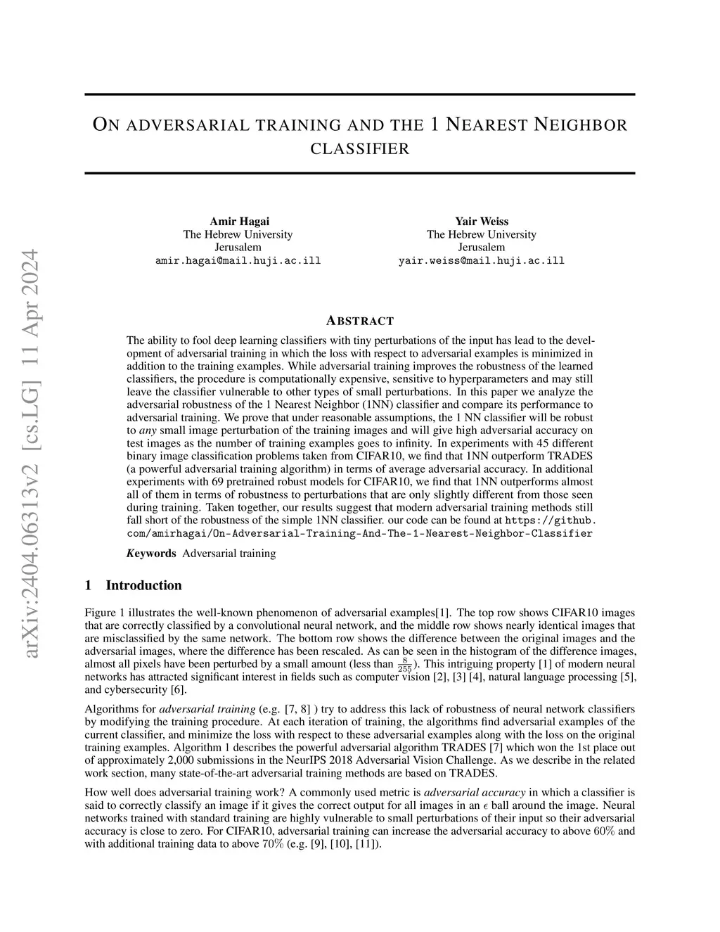On adversarial training and the 1 Nearest Neighbor classifier
