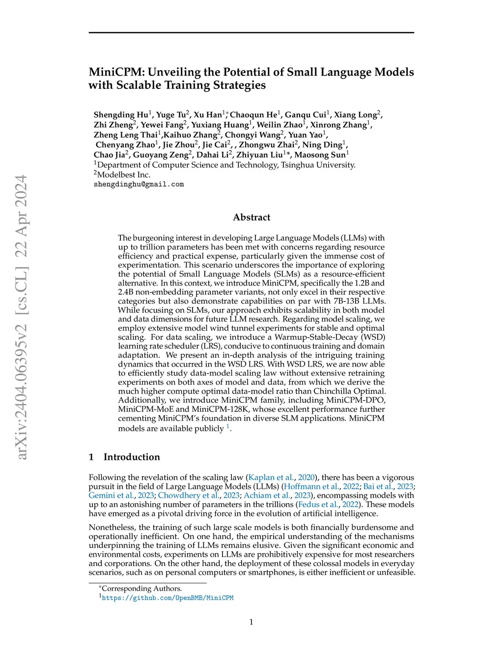MiniCPM: Unveiling the Potential of Small Language Models with Scalable