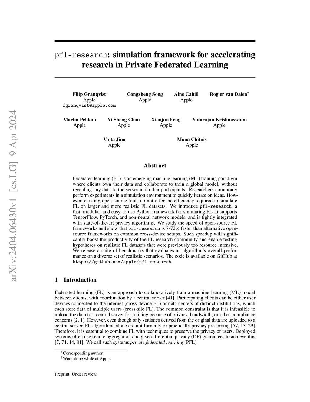 pfl-research: simulation framework for accelerating research in Private