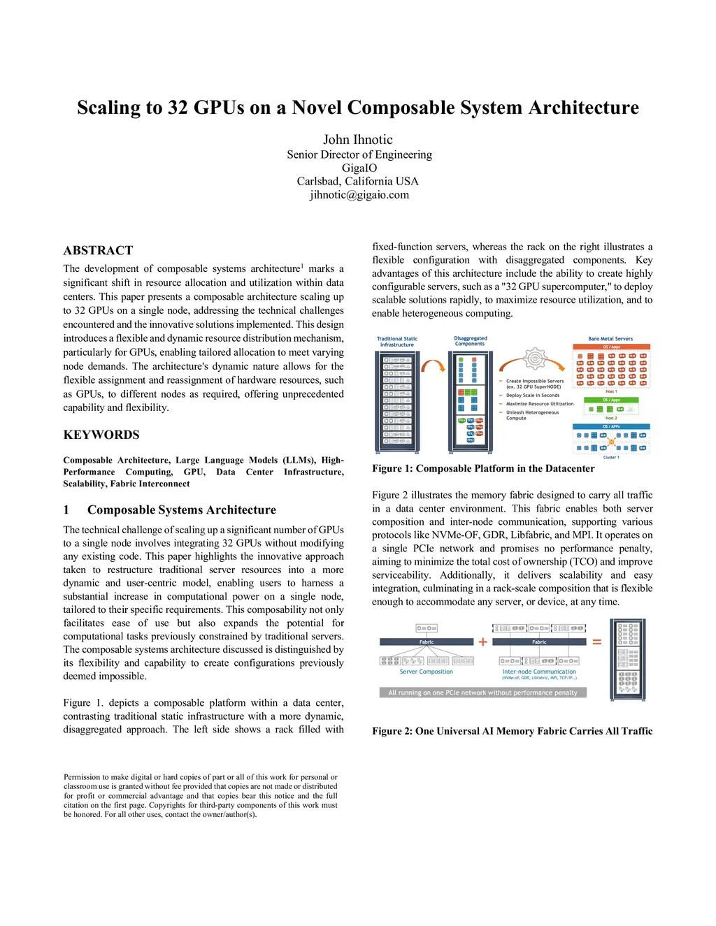 The development of composable systems architecture marks a significant shift in resource allocation and utilization within data centers. This paper presents a composable architecture scaling up to 32 GPUs on a single node, addressing the technical challenges encountered and the innovative solutions implemented. This design introduces a flexible and dynamic resource distribution mechanism, particularly for GPUs, enabling tailored allocation to meet varying node demands. The architecture's dynamic nature allows for the flexible assignment and reassignment of hardware resources, such as GPUs, to different nodes as required, offering unprecedented capability and flexibility.