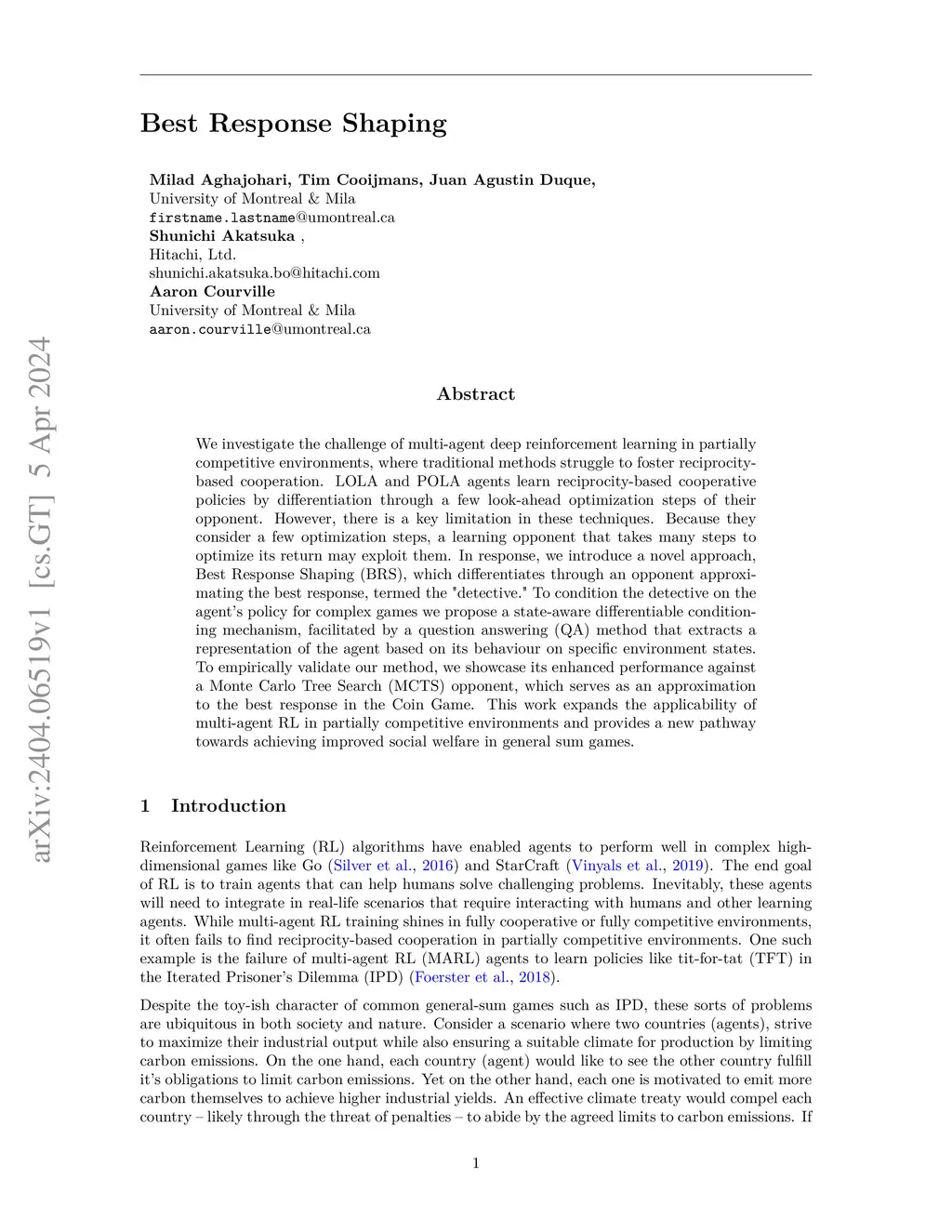 We investigate the challenge of multi-agent deep reinforcement learning in partially competitive environments, where traditional methods struggle to foster reciprocity-based cooperation. LOLA and POLA agents learn reciprocity-based cooperative policies by differentiation through a few look-ahead optimization steps of their opponent. However, there is a key limitation in these techniques. Because they consider a few optimization steps, a learning opponent that takes many steps to optimize its return may exploit them. In response, we introduce a novel approach, Best Response Shaping (BRS), which differentiates through an opponent approximating the best response, termed the "detective." To condition the detective on the agent's policy for complex games we propose a state-aware differentiable conditioning mechanism, facilitated by a question answering (QA) method that extracts a representation of the agent based on its behaviour on specific environment states. To empirically validate our method, we showcase its enhanced performance against a Monte Carlo Tree Search (MCTS) opponent, which serves as an approximation to the best response in the Coin Game. This work expands the applicability of multi-agent RL in partially competitive environments and provides a new pathway towards achieving improved social welfare in general sum games.