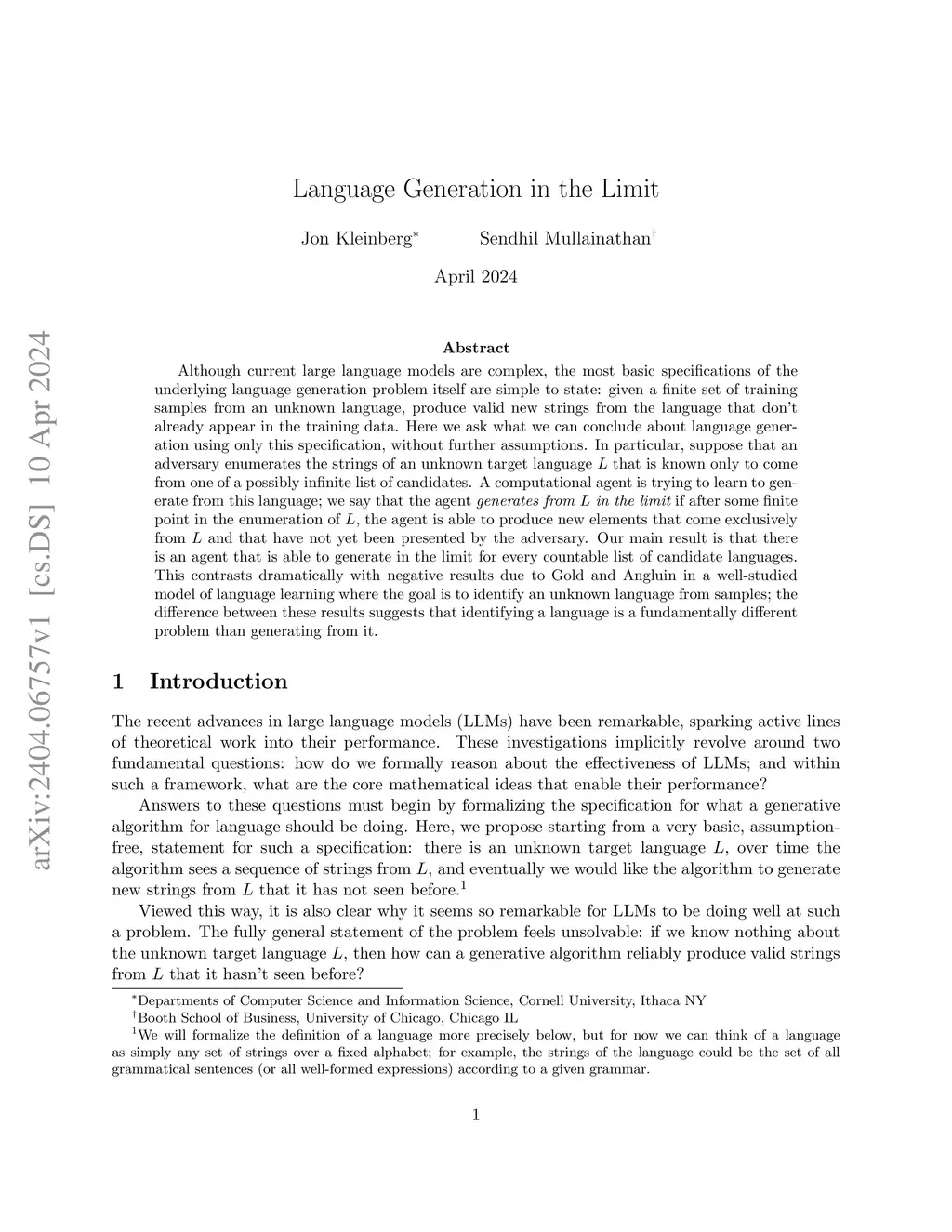 Language Generation in the Limit