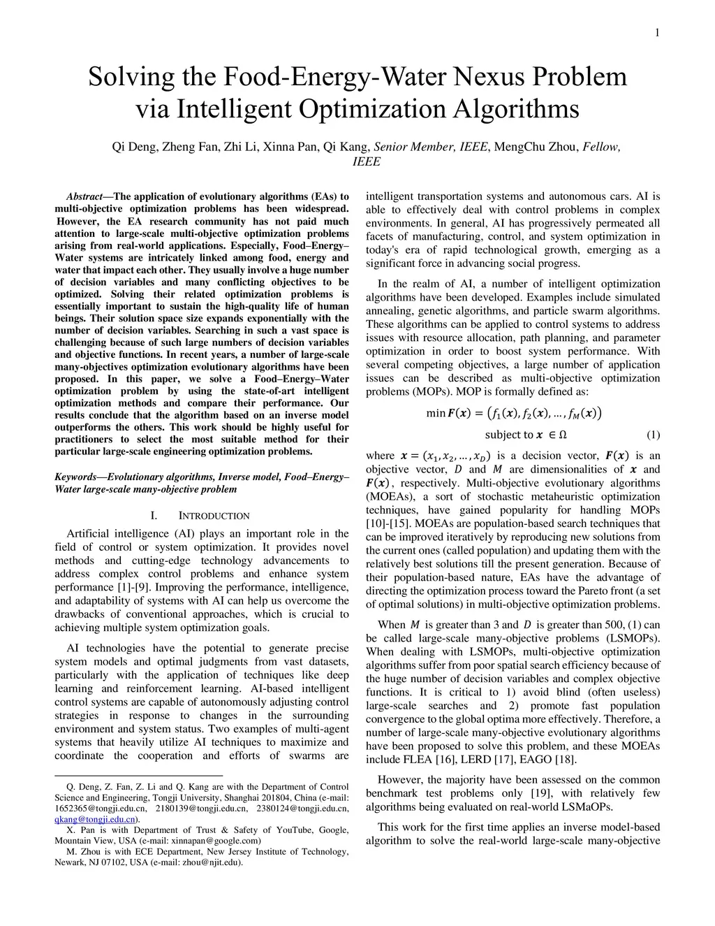 Solving the Food-Energy-Water Nexus Problem via Intelligent Optimization