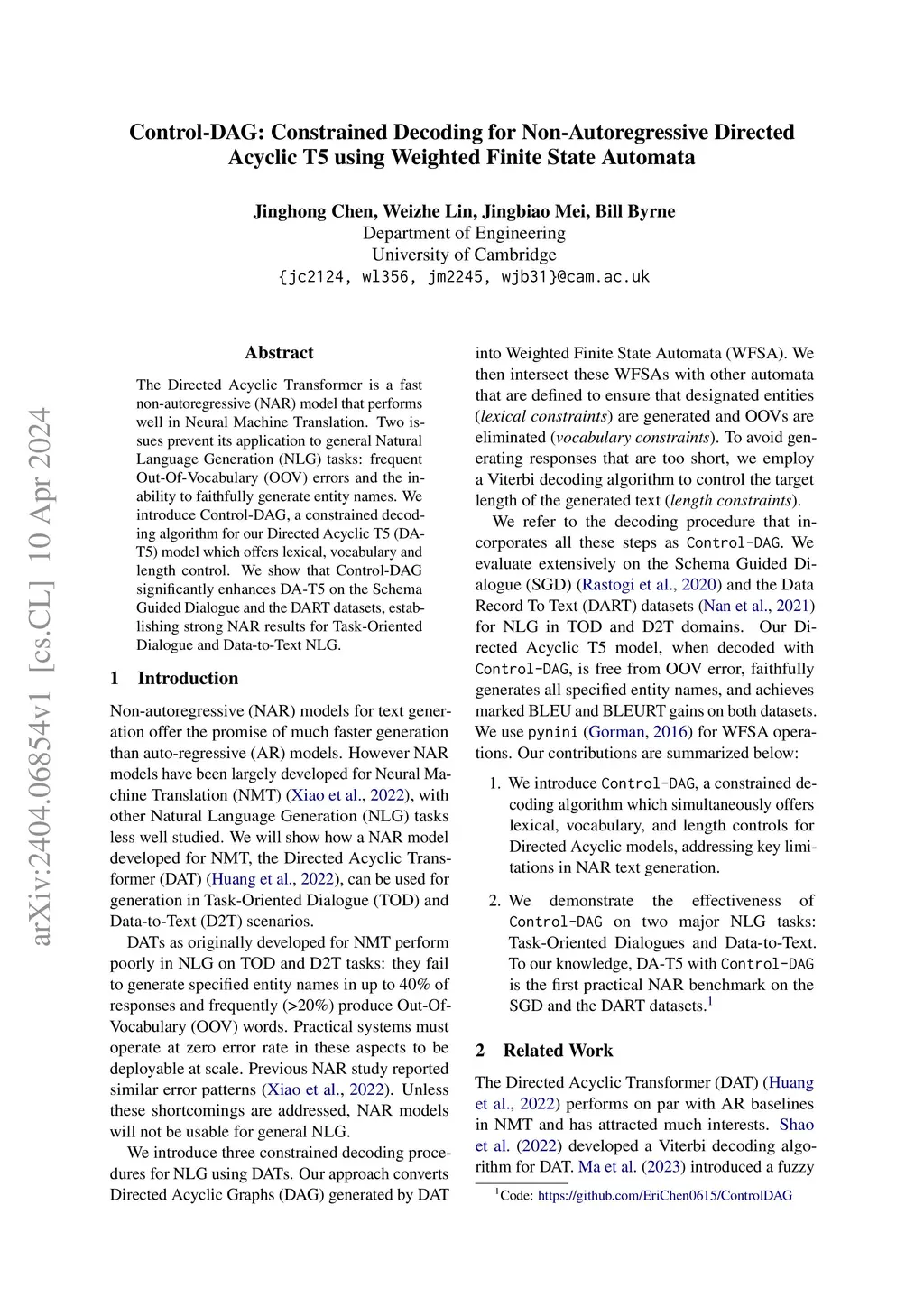 The Directed Acyclic Transformer is a fast non-autoregressive (NAR) model that performs well in Neural Machine Translation. Two issues prevent its application to general Natural Language Generation (NLG) tasks: frequent Out-Of-Vocabulary (OOV) errors and the inability to faithfully generate entity names. We introduce Control-DAG, a constrained decoding algorithm for our Directed Acyclic T5 (DA-T5) model which offers lexical, vocabulary and length control. We show that Control-DAG significantly enhances DA-T5 on the Schema Guided Dialogue and the DART datasets, establishing strong NAR results for Task-Oriented Dialogue and Data-to-Text NLG.