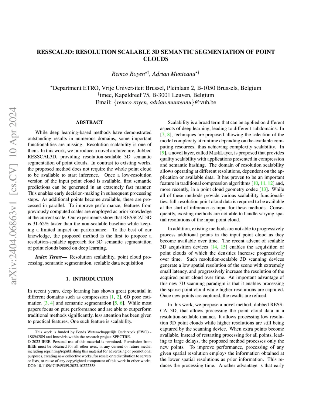 RESSCAL3D: Resolution Scalable 3D Semantic Segmentation of Point Clouds
