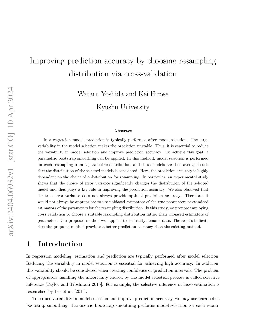 In a regression model, prediction is typically performed after model selection. The large variability in the model selection makes the prediction unstable. Thus, it is essential to reduce the variability in model selection and improve prediction accuracy. To achieve this goal, a parametric bootstrap smoothing can be applied. In this method, model selection is performed for each resampling from a parametric distribution, and these models are then averaged such that the distribution of the selected models is considered. Here, the prediction accuracy is highly dependent on the choice of a distribution for resampling. In particular, an experimental study shows that the choice of error variance significantly changes the distribution of the selected model and thus plays a key role in improving the prediction accuracy. We also observed that the true error variance does not always provide optimal prediction accuracy. Therefore, it would not always be appropriate to use unbiased estimators of the true parameters or standard estimators of the parameters for the resampling distribution. In this study, we propose employing cross validation to choose a suitable resampling distribution rather than unbiased estimators of parameters. Our proposed method was applied to electricity demand data. The results indicate that the proposed method provides a better prediction accuracy than the existing method.