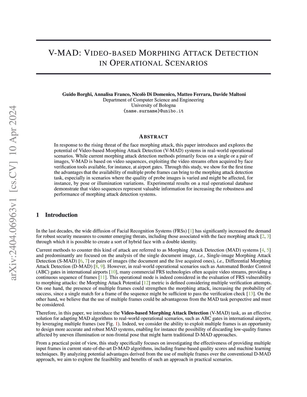 V-MAD: Video-based Morphing Attack Detection in Operational Scenarios
