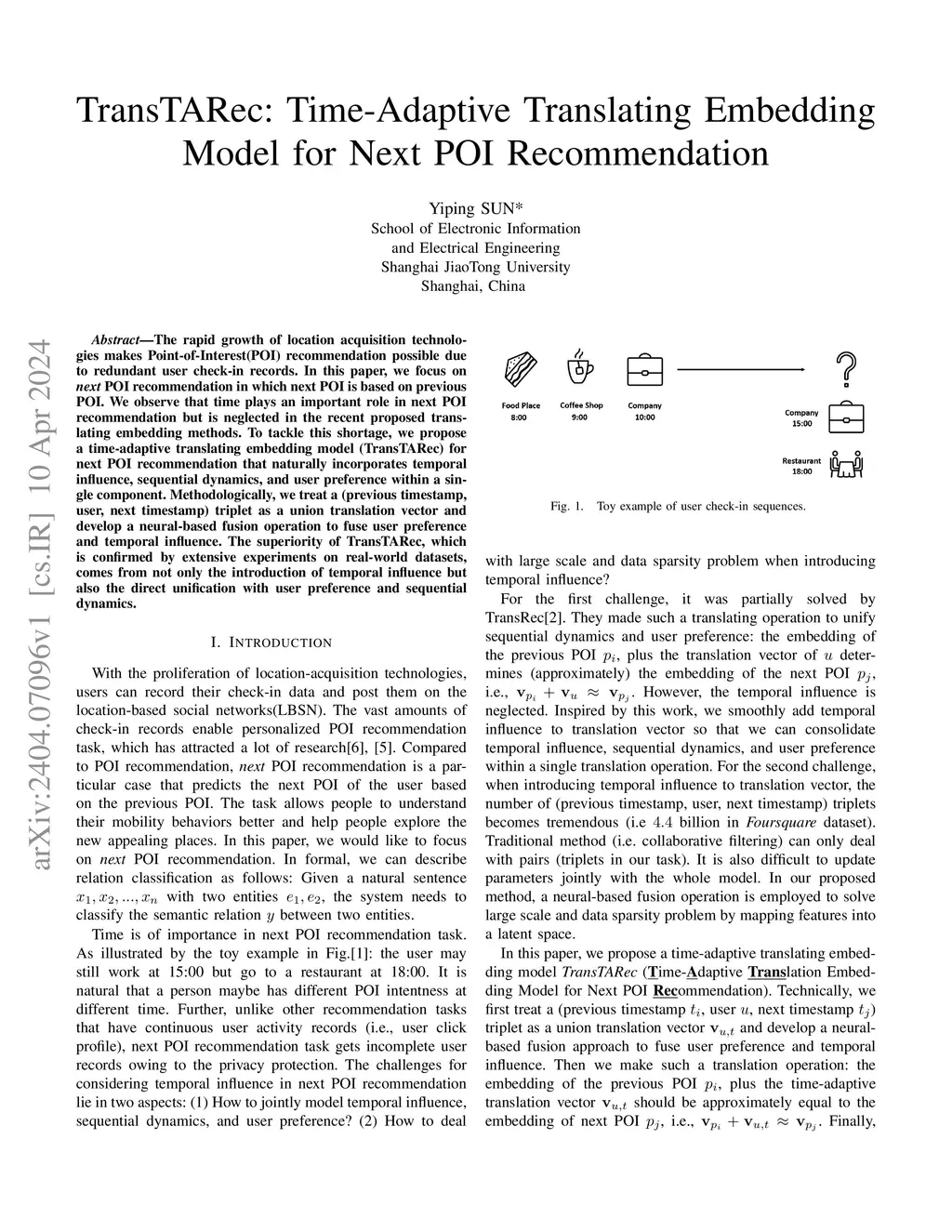 TransTARec: Time-Adaptive Translating Embedding Model for Next POI