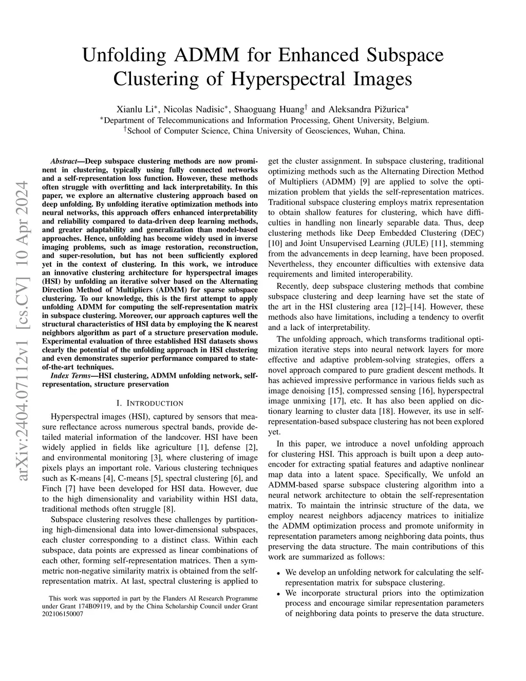 Unfolding ADMM for Enhanced Subspace Clustering of Hyperspectral Images