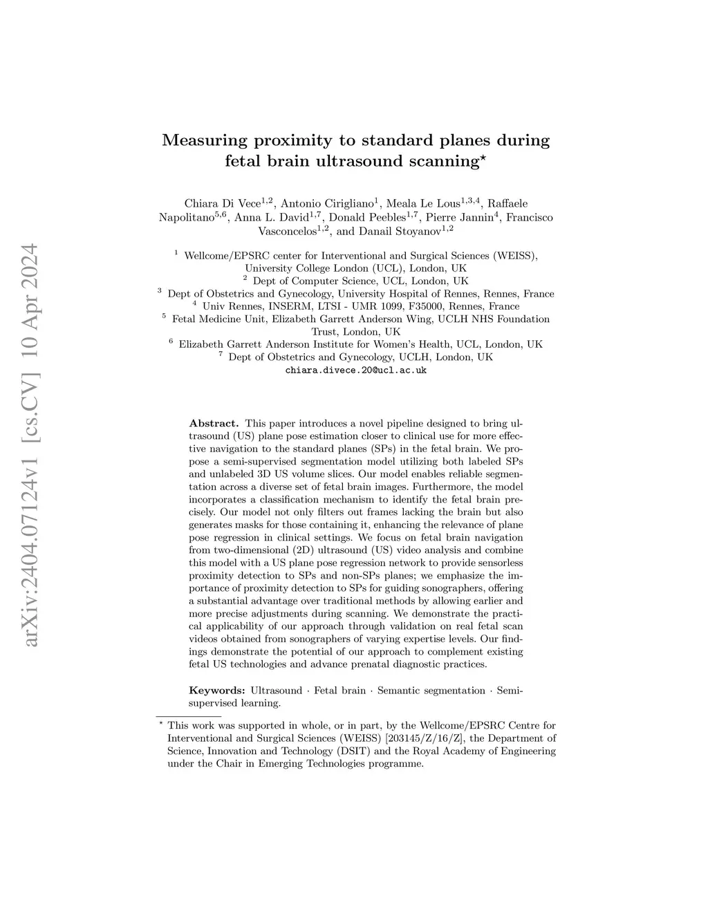 This paper introduces a novel pipeline designed to bring ultrasound (US) plane pose estimation closer to clinical use for more effective navigation to the standard planes (SPs) in the fetal brain. We propose a semi-supervised segmentation model utilizing both labeled SPs and unlabeled 3D US volume slices. Our model enables reliable segmentation across a diverse set of fetal brain images. Furthermore, the model incorporates a classification mechanism to identify the fetal brain precisely. Our model not only filters out frames lacking the brain but also generates masks for those containing it, enhancing the relevance of plane pose regression in clinical settings. We focus on fetal brain navigation from 2D ultrasound (US) video analysis and combine this model with a US plane pose regression network to provide sensorless proximity detection to SPs and non-SPs planes; we emphasize the importance of proximity detection to SPs for guiding sonographers, offering a substantial advantage over traditional methods by allowing earlier and more precise adjustments during scanning. We demonstrate the practical applicability of our approach through validation on real fetal scan videos obtained from sonographers of varying expertise levels. Our findings demonstrate the potential of our approach to complement existing fetal US technologies and advance prenatal diagnostic practices.