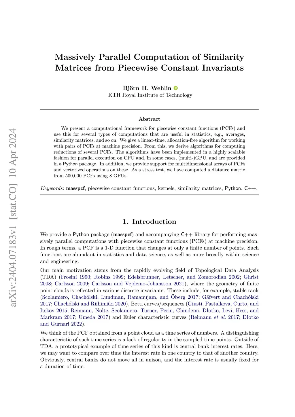 Massively Parallel Computation of Similarity Matrices from Piecewise