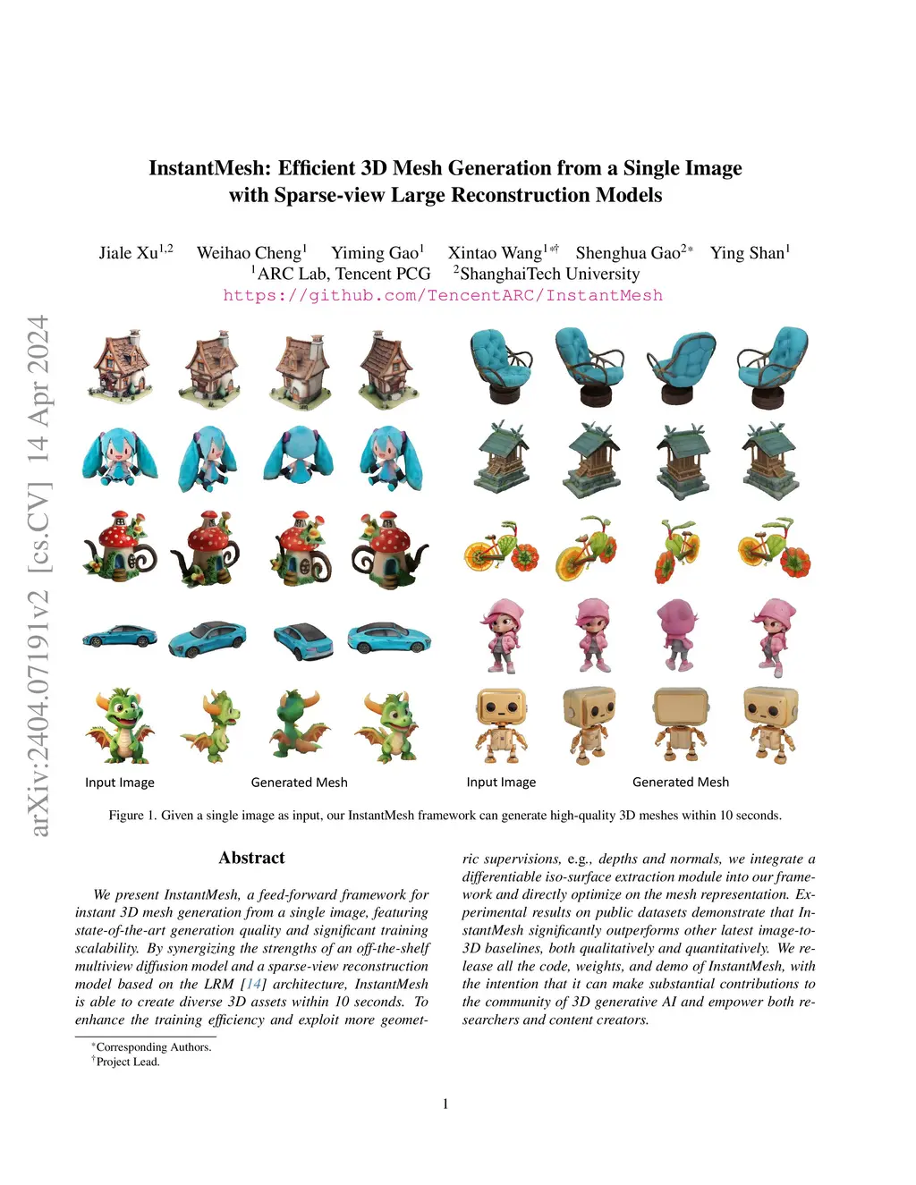 InstantMesh: Efficient 3D Mesh Generation from a Single Image with Sparse-view Large Reconstruction Models