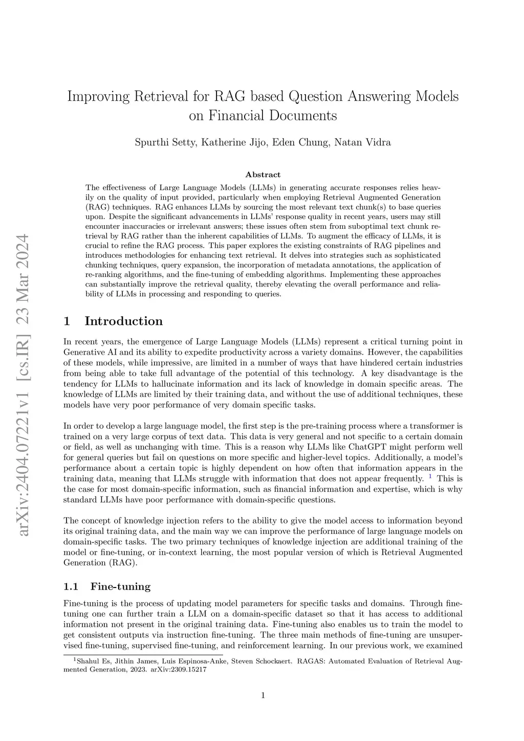 Improving Retrieval for RAG based Question Answering Models on Financial
