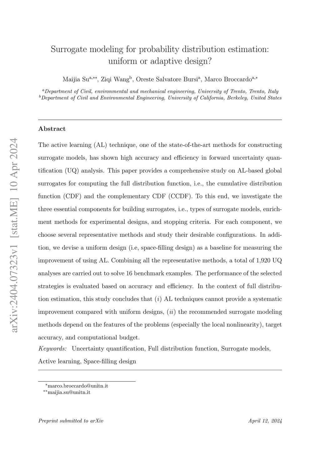 Surrogate modeling for probability distribution estimation:uniform or