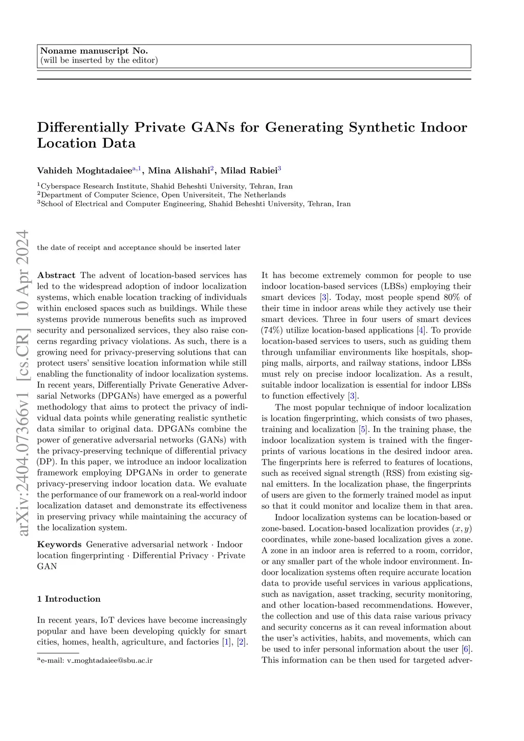 The advent of location-based services has led to the widespread adoption of indoor localization systems, which enable location tracking of individuals within enclosed spaces such as buildings. While these systems provide numerous benefits such as improved security and personalized services, they also raise concerns regarding privacy violations. As such, there is a growing need for privacy-preserving solutions that can protect users' sensitive location information while still enabling the functionality of indoor localization systems. In recent years, Differentially Private Generative Adversarial Networks (DPGANs) have emerged as a powerful methodology that aims to protect the privacy of individual data points while generating realistic synthetic data similar to original data. DPGANs combine the power of generative adversarial networks (GANs) with the privacy-preserving technique of differential privacy (DP). In this paper, we introduce an indoor localization framework employing DPGANs in order to generate privacy-preserving indoor location data. We evaluate the performance of our framework on a real-world indoor localization dataset and demonstrate its effectiveness in preserving privacy while maintaining the accuracy of the localization system.