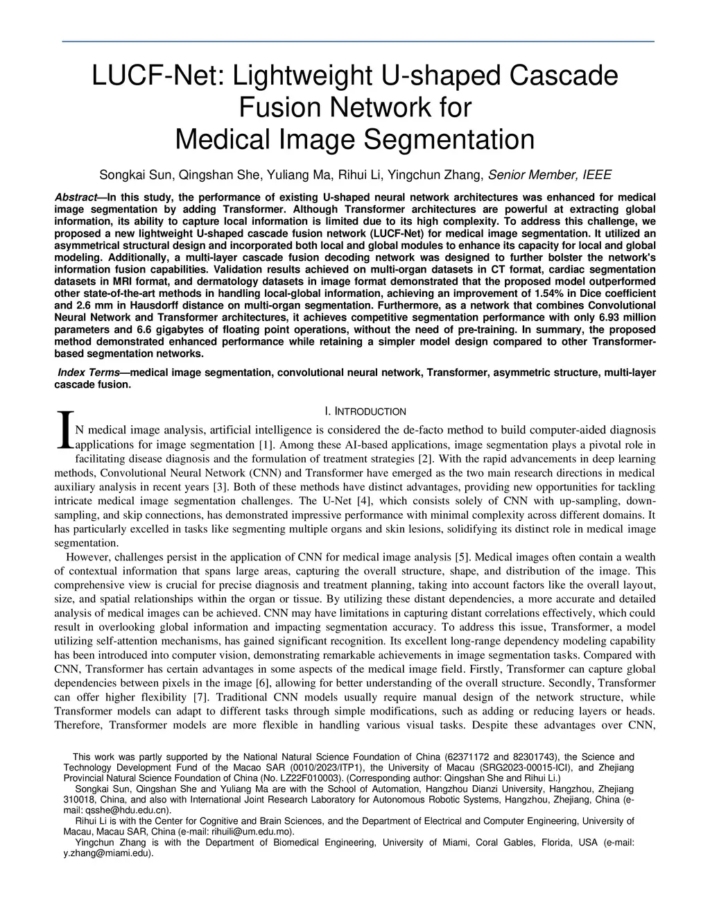 LUCF-Net: Lightweight U-shaped Cascade Fusion Network for Medical Image