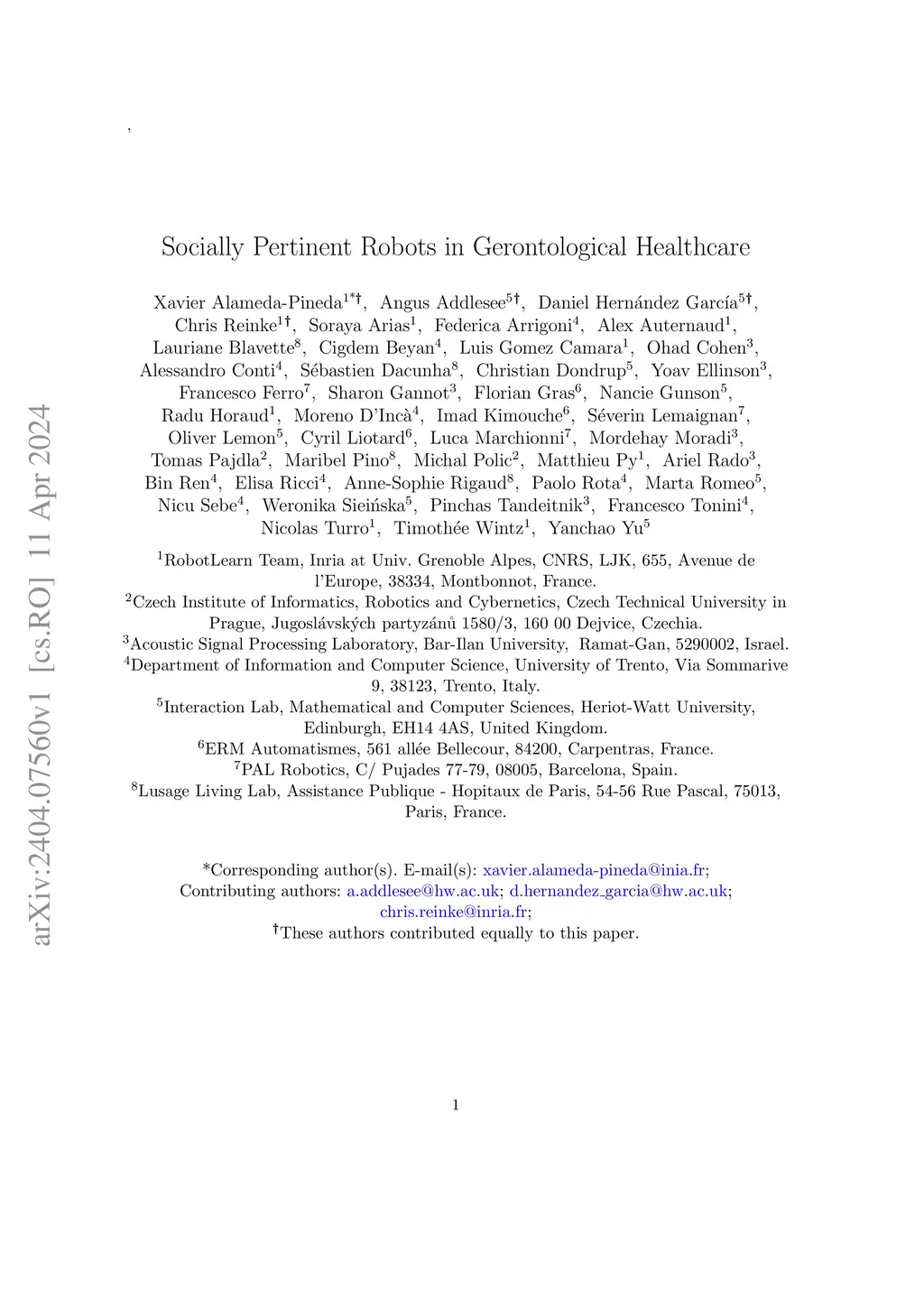 Socially Pertinent Robots in Gerontological Healthcare