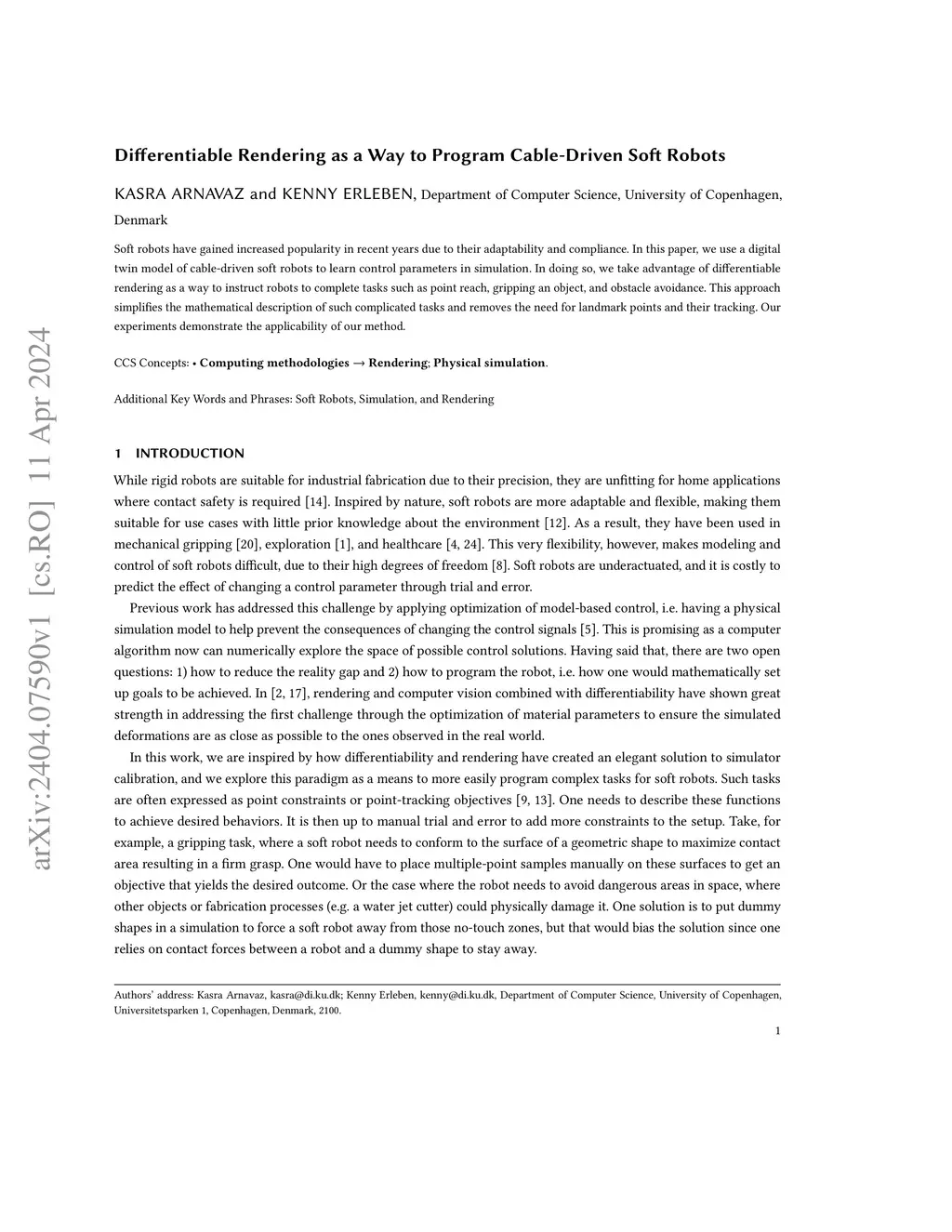 Soft robots have gained increased popularity in recent years due to their adaptability and compliance. In this paper, we use a digital twin model of cable-driven soft robots to learn control parameters in simulation. In doing so, we take advantage of differentiable rendering as a way to instruct robots to complete tasks such as point reach, gripping an object, and obstacle avoidance. This approach simplifies the mathematical description of such complicated tasks and removes the need for landmark points and their tracking. Our experiments demonstrate the applicability of our method.