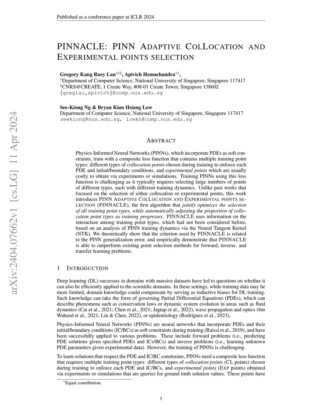 PINNACLE: PINN Adaptive ColLocation and Experimental points selection