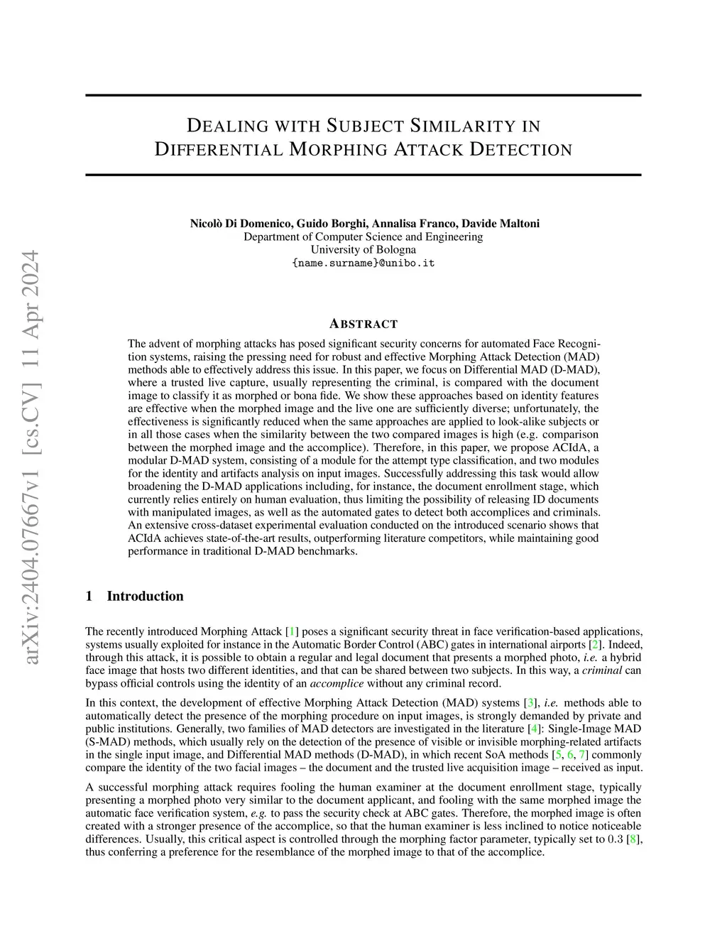 The advent of morphing attacks has posed significant security concerns for automated Face Recognition systems, raising the pressing need for robust and effective Morphing Attack Detection (MAD) methods able to effectively address this issue. In this paper, we focus on Differential MAD (D-MAD), where a trusted live capture, usually representing the criminal, is compared with the document image to classify it as morphed or bona fide. We show these approaches based on identity features are effective when the morphed image and the live one are sufficiently diverse; unfortunately, the effectiveness is significantly reduced when the same approaches are applied to look-alike subjects or in all those cases when the similarity between the two compared images is high (e.g. comparison between the morphed image and the accomplice). Therefore, in this paper, we propose ACIdA, a modular D-MAD system, consisting of a module for the attempt type classification, and two modules for the identity and artifacts analysis on input images. Successfully addressing this task would allow broadening the D-MAD applications including, for instance, the document enrollment stage, which currently relies entirely on human evaluation, thus limiting the possibility of releasing ID documents with manipulated images, as well as the automated gates to detect both accomplices and criminals. An extensive cross-dataset experimental evaluation conducted on the introduced scenario shows that ACIdA achieves state-of-the-art results, outperforming literature competitors, while maintaining good performance in traditional D-MAD benchmarks.