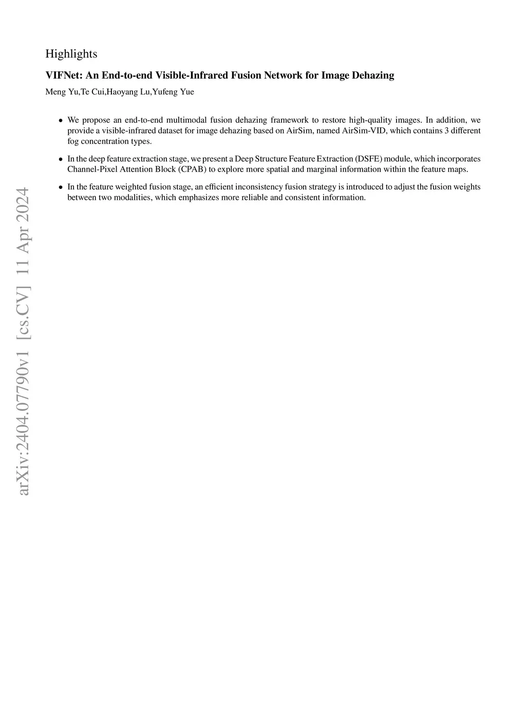 VIFNet: An End-to-end Visible-Infrared Fusion Network for Image Dehazing