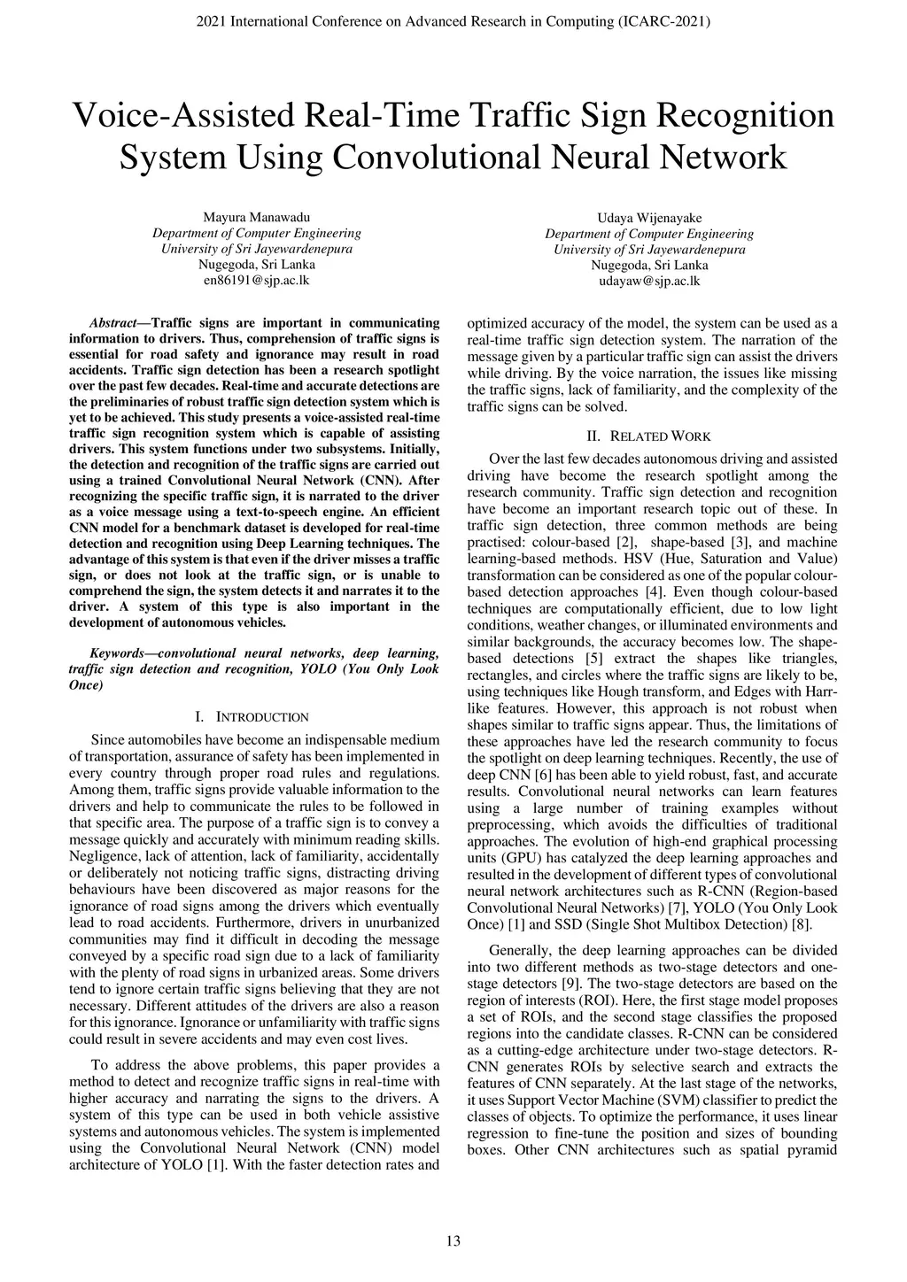 Voice-Assisted Real-Time Traffic Sign Recognition System Using