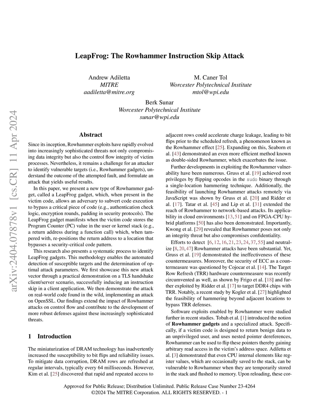 LeapFrog: The Rowhammer Instruction Skip Attack