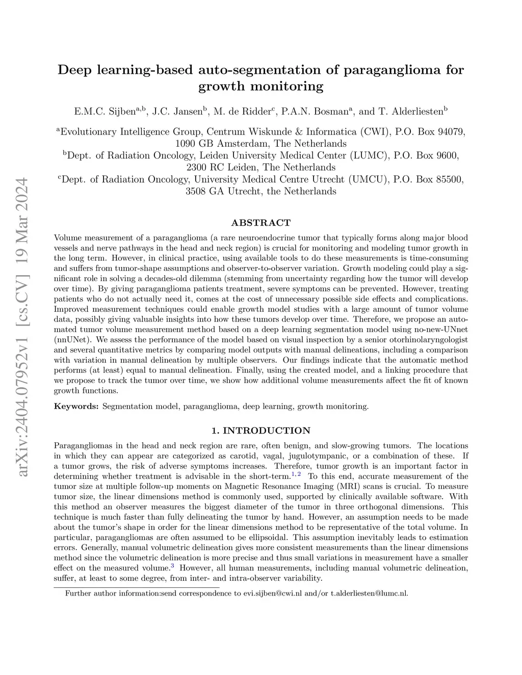 Deep learning-based auto-segmentation of paraganglioma for growth