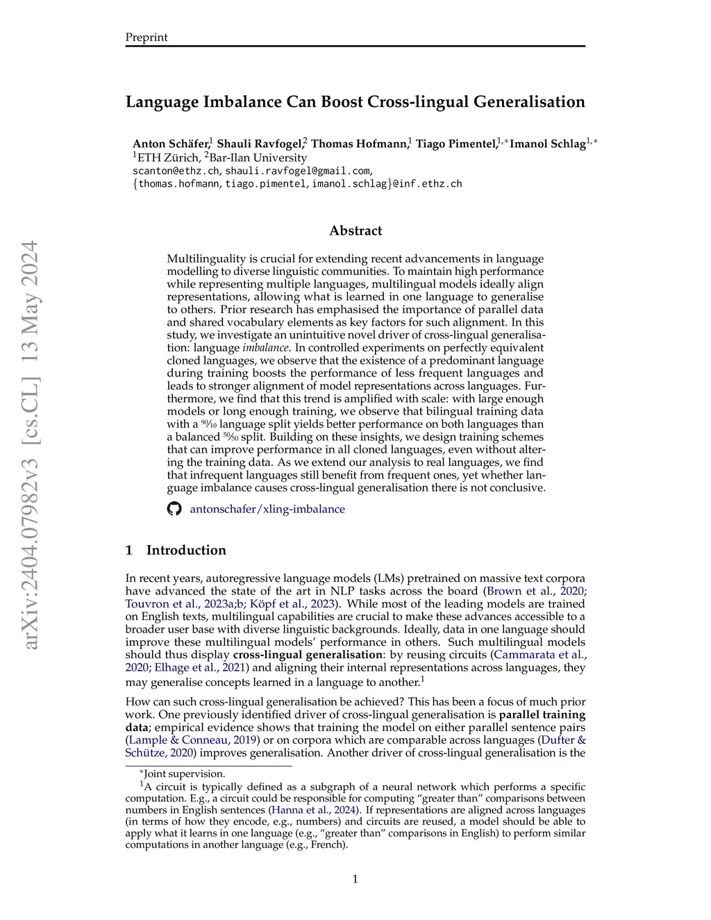 The Role of Language Imbalance in Cross-lingual Generalisation: Insights